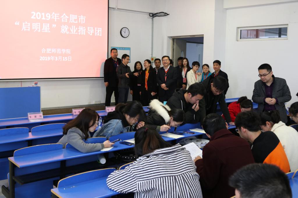 院领导一行还来到逸夫楼,现场观摩了由合肥市“启明星”职业指导团的专家为学生进行的结构化面试讲座和无领导小组讨论等方面的现场就业指导服务,充分肯定了这一精准化的服务对于提高学生就业能力的积极作用。