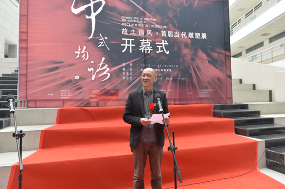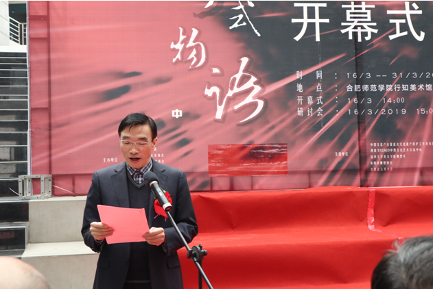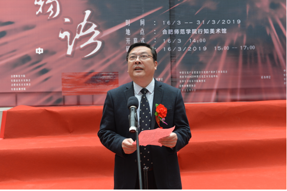 徐成钢代表合肥师范学院全体师生,向各位领导、各位来宾莅临学院指导工作,表示热烈的欢迎!向各位领导、各位来宾长期以来对学院办学的关心和支持,表示衷心的感谢!同时介绍了学院发展历史沿革、办学定位和办学特色,肯定了本次展览的专业性、学术性和教育性,并提出三点期望,一是贯彻落实习近平总书记在看望参加全国政协十三届二次会议的文化艺术界、社会科学界委员时的重要讲话精神,艺术家和文艺创作要坚定文化自信,把握时代脉搏,聆听时代声音,坚持与时代同步伐,以人民为中心,以精品奉献人民,用明德引领风尚。二是以“故土追风,用明德引领社会风尚”为主题,将艺术根植于中国传统文化,将展览办成集专业性、学术性、教育性为一体的高规格艺术创作和教学实践的交流活动。三是以本次展览为契机,进一步与安徽省美术家协会、安徽省雕塑院、合肥市美术家协会及兄弟高校加强交流,深化合作,互利共赢,加快打造更高水平的艺术人才培养体系和学科专业体系,努力为新时代安徽艺术文化事业发展提供人才和智力支持。
