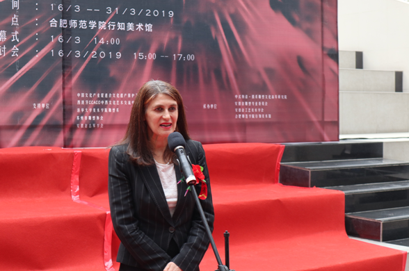 Gloria Minguez首先预祝“中式物语—故土追风·首届当代雕塑展”取得圆满成功!她谈到了中国和西班牙都是拥有悠久文化传统的国家,此次具有中国气质的当代雕塑展览,充分展示了中国的文化和艺术。同时指出,西班牙CCACO中西文化交流中心与合肥师范学院之间的合作,从国家层面的国事访问,到高校课程开设中对彼此文化的重视,都可以看到两国之间的友好,希望两国高校间有更多的交流与合作,希望可以看到更多的艺术活动和展览。