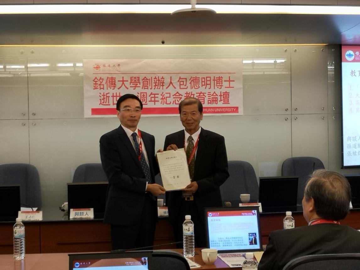 在基河校区举办的高等教育论坛上,孙道胜发表热情洋溢的演讲,他重点就台湾铭传大学秉持“人之儿女,己之儿女”的办学理念与我院“爱满天下,知行合一”的校训之间的关系进行了深入的探讨与阐释,受到海内外与会人员的一致认可。