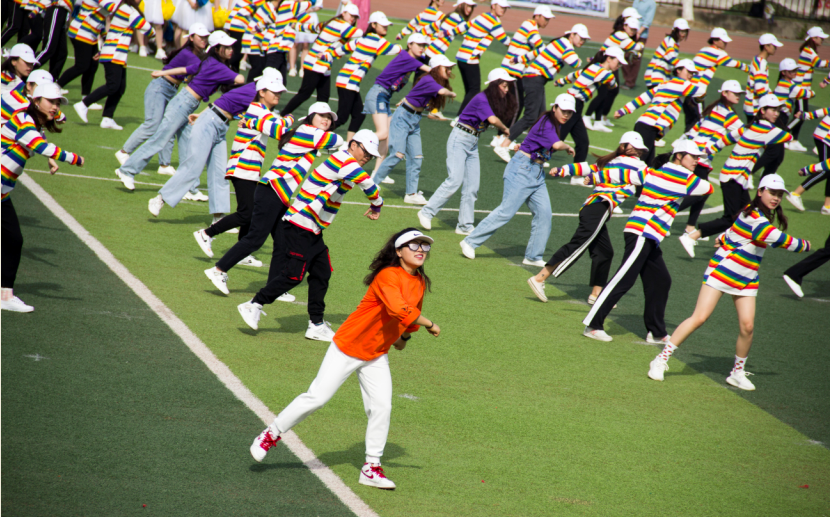 体育科学学院的舞龙舞狮正式拉开表演帷幕,扣人心弦的翻扑跌打,赢得了大家的阵阵掌声与欢呼。合肥师范学院附属小学和体育科学学院同学们合作完成的武术表演,活泼可爱与刚劲有力完美融合,一招一式将中华武术的精髓演绎得淋漓尽致。挥舞着红色花球,啦啦操俱乐部带来《为青春鼓掌》,彰显着当代大学生朝气蓬勃的精神面貌。体育舞蹈俱乐部的同学们用活力四射的舞步点燃了大家的热情,展示出俏丽的青春姿态。街舞俱乐部、体育科学学院、sky街舞协会的同学们迈着动感的步伐进入操场中央,一首《卡路里》燃爆全场。啦啦操俱乐部的同学们,伴随着激昂的音乐,舞动着扇面和花球,呈现出浓厚的中国古典之美。作为压轴出场的节目,体育科学学院用《我爱你中国》舞蹈表演献礼新中国成立70周年。在美妙的歌声中,参与舞龙舞狮、武术、啦啦操、舞蹈等表演的同学们齐聚田径场中央,围绕着正中心鲜艳的五星红旗,全场师生同唱一首歌,祝愿学校欣欣向荣、祖国繁荣昌盛。