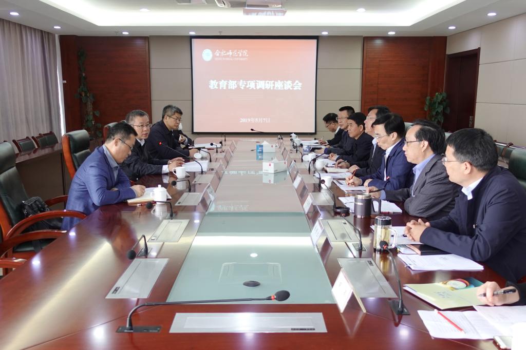 本网讯5月7日上午,教育部教师工作司司长任友群、教师管理处处长黄小华在省教育厅办公室主任吴金辉、师资处处长朱玉华陪同下来我院调研。院党委书记徐成钢,党委副书记、院长孙道胜全程陪同调研。