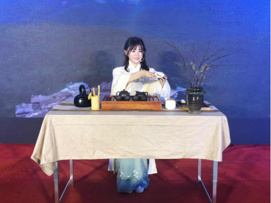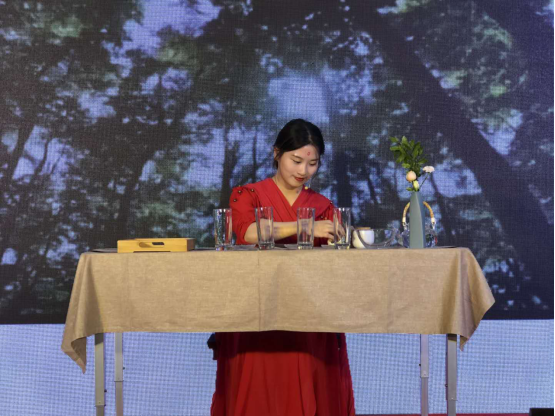 丁瑶瑶同学的茶艺表演作品《茗酬知己》将知己友情与茶艺表演相结合,通过朗诵和行云流水般的泡茶手法打动了在场的评委与观众。