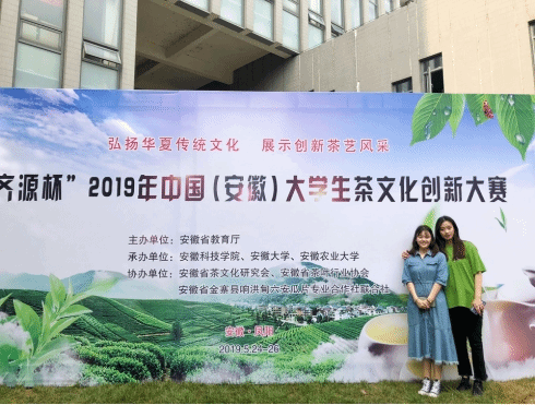 本网讯5月24日至5月26日,由安徽省教育厅主办,安徽科技学院、安徽大学和安徽农业大学联合承办的2019年中国(安徽)大学生茶文化创新大赛在安徽科技学院举行。我院外国语学院的丁瑶瑶和汪贵霞两位同学在陈婷、李慧老师的指导下,凭借优异的成绩均获得个人赛二等奖。