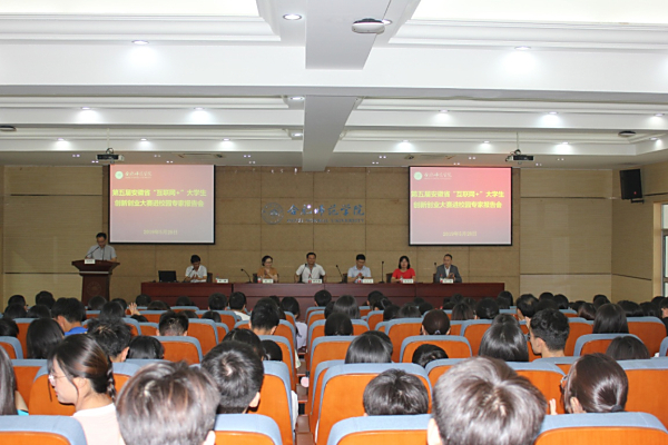 李兴国教授以《亮剑红海——搏击互联网+大学生创新创业大赛》为题,就大学生参赛创业计划书的撰写方法作了详细的介绍,包括摘要、项目简介、定位、产品与服务、市场、营销计划、商业模式、知识产权、团队、财务分析、融资、风控、实战建议、注意事项等方面,并列举了案例。