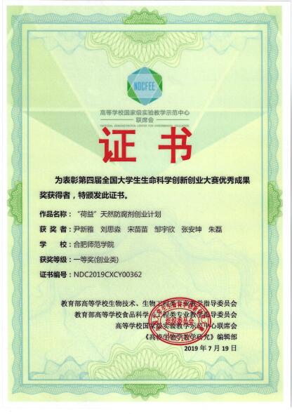 认真准备,沉着应战,参赛作品《“荷益”天然防腐剂创业计划》荣获一等奖,张海玲老师荣获创业类指导老师一等奖。