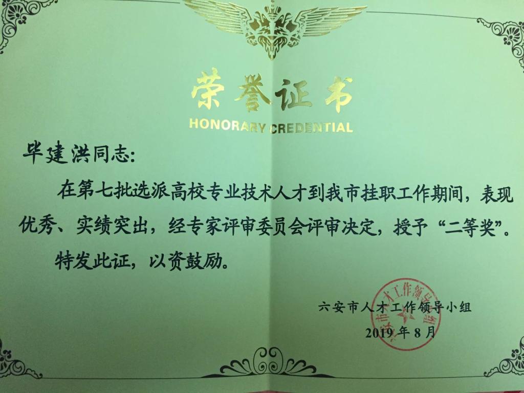 一批团队成员的实践应用能力。毕建洪教授以踏实的工作作风和过硬的专业技术赢得了企业的信任和地方政府的一致好评,