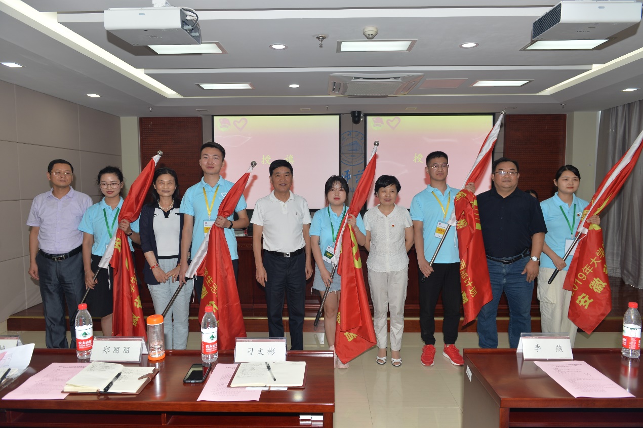 在主席台就座的领导老师为西部计划志愿者们进行了授旗。
