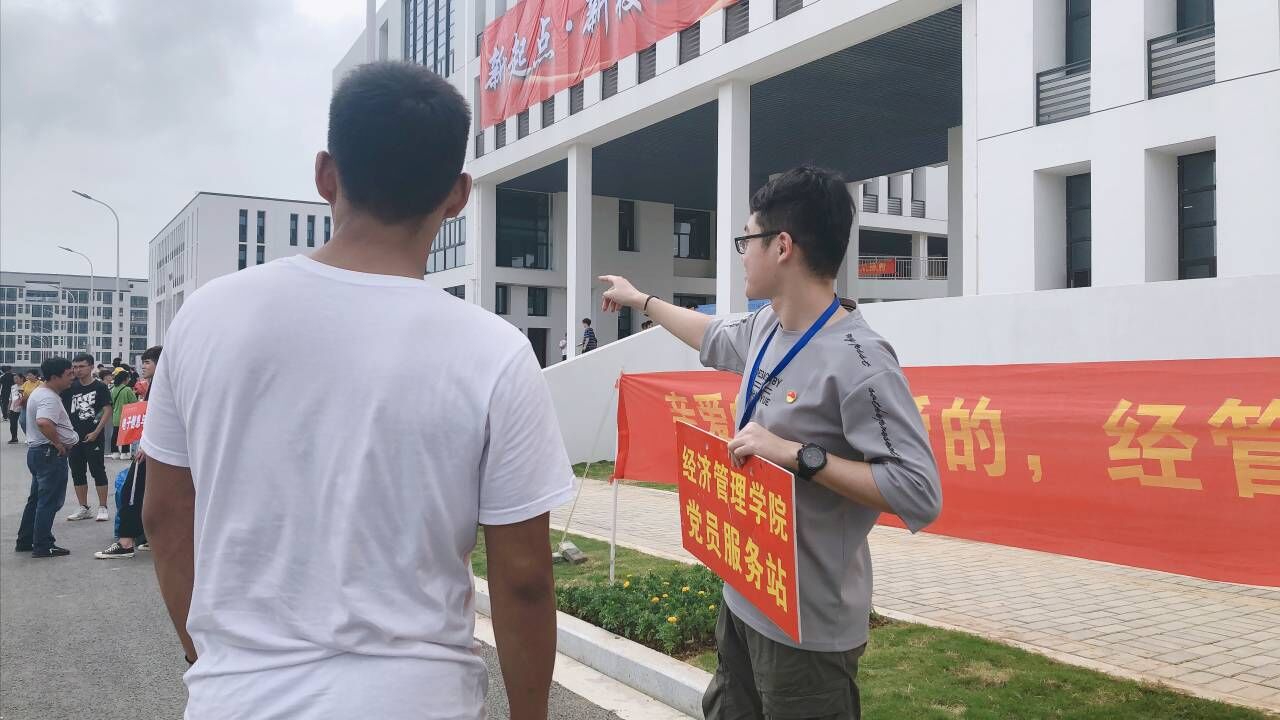 本网讯金秋送爽丹桂飘香,八方学子齐聚一堂。9月6日,滨湖校区喜迎2019级新生,校园里一幅幅温馨的党员服务标语、一个个醒目的党员服务岗、一群群佩戴党员徽章或党员身份标牌的身影,成为迎新场上的一道亮丽风景。