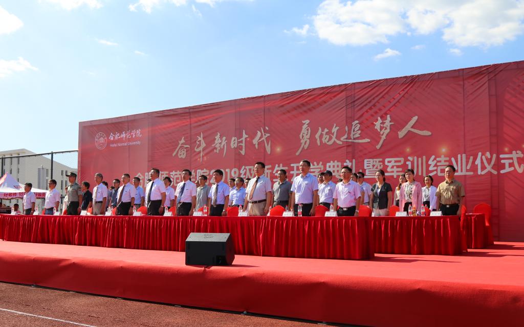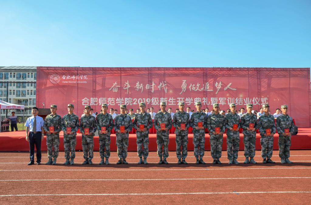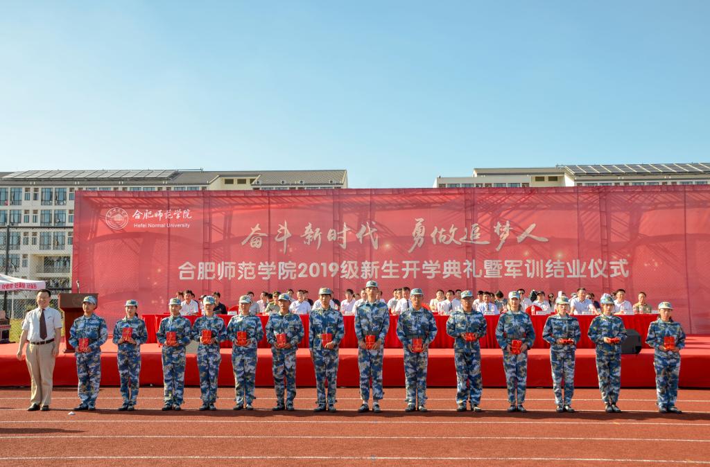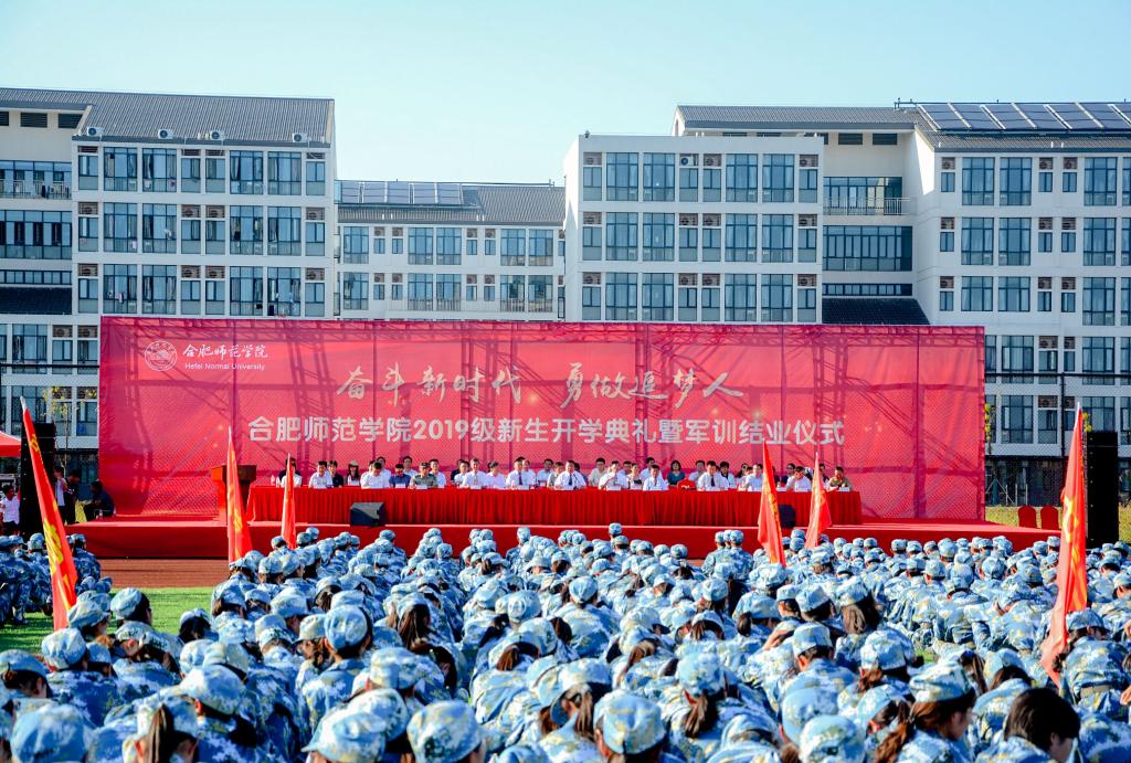 开学典礼暨军训结业仪式在激昂的《合肥师范学院校歌》声中圆满结束。(宣传部 办公室 学生工作处 滨湖办 新闻中心:卫爱明 章洁 胡石清/文 江安哲 方文韬 何叶彤 金津 吴旭 李铭浩/图)