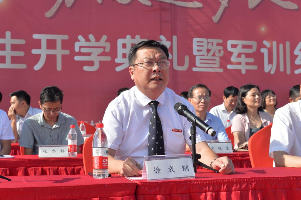党委书记徐成钢在主持会议时深情寄语新同学“奋斗新时代、勇做追梦人”。一是坚守报国之心,做新时代的爱国者。希望同学们坚持以习近平新时代中国特色社会主义思想武装头脑,坚定不移跟党走,把党的初心使命铭刻于心,把个人成长追求与国家、社会发展需求结合起来,在努力追梦中彰显责任担当;二是锤炼坚韧之心,做新时代的奋斗者。希望同学们保持百折不挠的奋斗精神、乐观向上的人生态度,善于用挫折提升心性、启迪人生,坚持以运动磨砺意志、积蓄能量,不贪图安逸、不惧怕风雨、不抱怨他人,在激情奋斗中创造无悔人生;三是常怀律己之心,做新时代的立德者。希望同学们保持“吾日三省吾身”的自觉,注重从优秀传统文化中汲取心灵营养,践行社会主义核心价值观,坚守法律法规、校纪校规和学术道德底线,在严以修身中努力行稳致远;四是永葆求真之心,做新时代的实干者。希望同学们珍惜宝贵的青春年华,克服浮躁、潜心学习,如饥似渴多读书、读好书,注重在实践、创新中求真知、悟真谛,做到知行合一、厚积薄发,在勤勉实干中培养过硬本领,努力成长为德智体美劳全面发展的社会主义建设者和接班人。