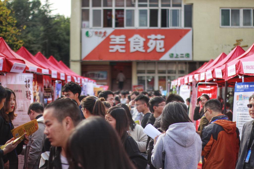本网讯为全面贯彻落实全国和安徽省关于促进高校毕业生就业创业工作的决策部署,把“稳就业”放在突出位置,进一步推进我校2020届毕业生就业工作,为毕业生求职和用人单位招聘人才提供高效、便捷、精准的服务,11月8日上午,学院2020届毕业生就业秋季双选会在锦绣校区生活广场举行。本次双选会由我院和蜀山区人社局主办,就业创业工作处(创业学院)和安徽正德人力资源咨询有限公司承办,吸引235家用人单位和上千名毕业生前来。