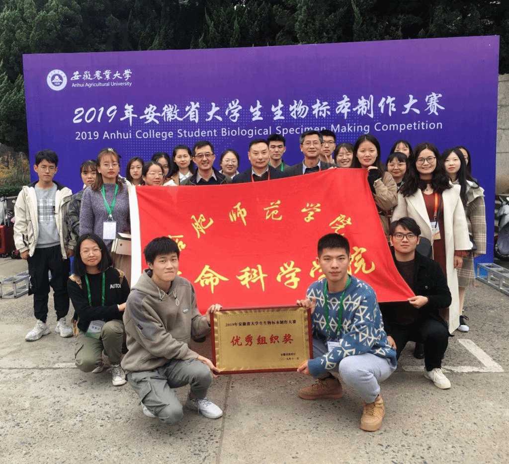 经过紧张激烈的标本展示和现场答辩环节,生命科学学院学子凭借过硬的专业技能和创新能力,获得全省一等奖1名,二等奖3名,三等奖3名,优秀指导教师1名的好成绩,并荣获“优秀组织奖”。耿明老师指导学生张雅洁、吴江锋、吴杰、侯万青、祝健制作的《渔牧生活》获得创新创意组一等奖,耿明老师获“优秀指导教师”荣誉称号。朱勇老师等指导学生汤赛男、胡倩华、范新月、汪子健、韩冰清、李星宇制作的《生态滨湖》获得动物标本组二等奖,朱勇老师等指导学生房悦、李思嘉、石盼玉、施馨蕊、魏文海制作的《锦绣》和李玲玲老师指导学生蔡艳、胡洁、曹家玲、沈倩、宋相程制作的《盛世永存》分别获得创新创意组二等奖。陶瑞松老师等指导学生王畅、高思茹、汪晓妍、刘雨琪、闫武、候稳制作的《兵临城下》获得动物标本组三等奖,欧祖兰老师指导学生刘汪蓉、张晓倩、胡颖怡、朱忆琳、李梦园制作的《干果大科普》,徐德聪老师等指导学生胡治颖、吴其敏、陆雨曼、邢珍珍、田彪制作的《荚果植物标本集》分别获得植物标本组三等奖。