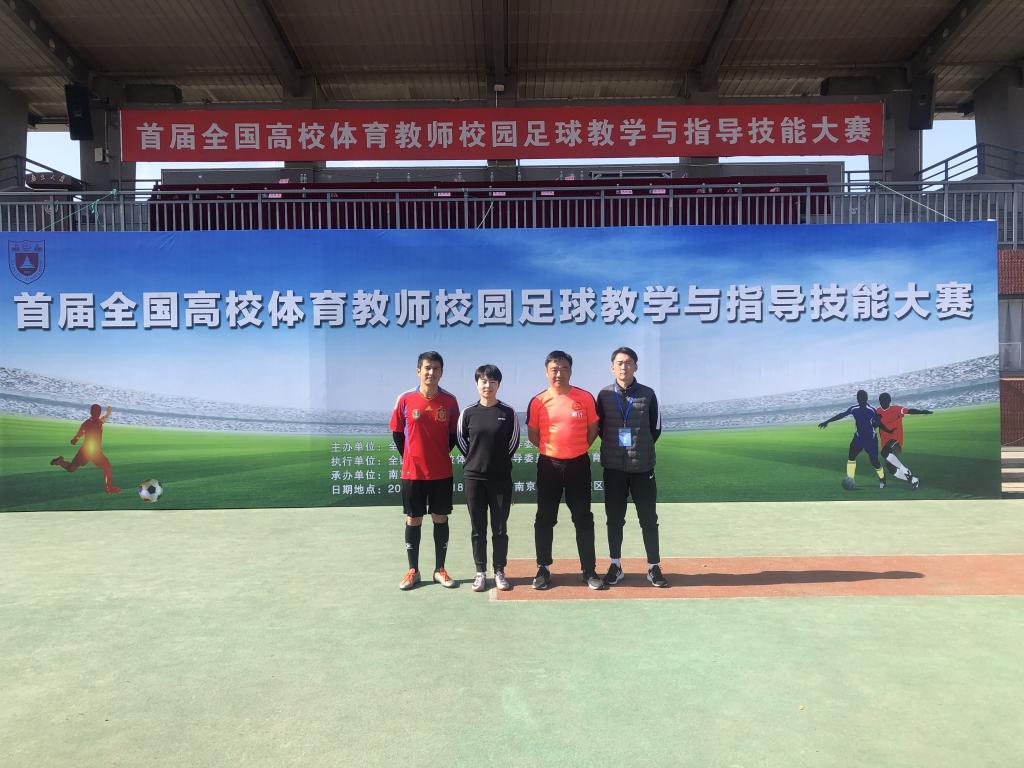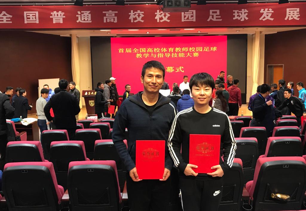 本网讯11月18日至20日,由全国高等学校体育教学指导委员会主办的“首届全国高校体育教师校园足球教学与指导技能大赛”在南京大学举行,来自全国28个省市自治区的197所高校的近200名足球教师参赛。我院教师谢永力和王金晶代表我省参赛。最终,谢永力获得课程教学组一等奖,王金晶获得课程教学组二等奖。