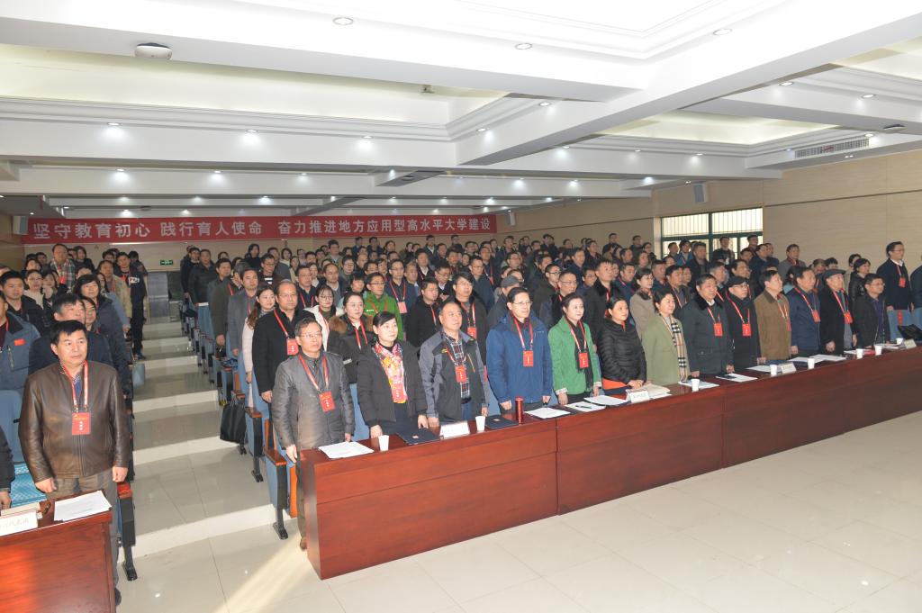 上午8时30分,大会在庄严的国歌声中隆重开幕。徐成钢代表学院党委和行政作《坚守教育初心 践行育人使命 奋力推进地方应用型高水平大学建设》的工作报告。
