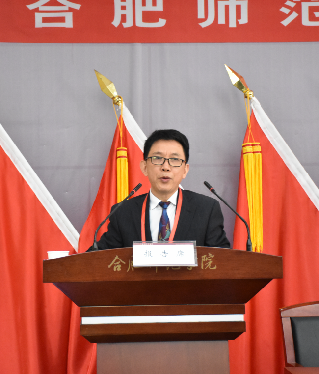 在雄壮的《国际歌》声中,中共合肥师范学院第二次代表大会2019年年会和合肥师范学院第七届二次教代会工代会胜利闭幕。
