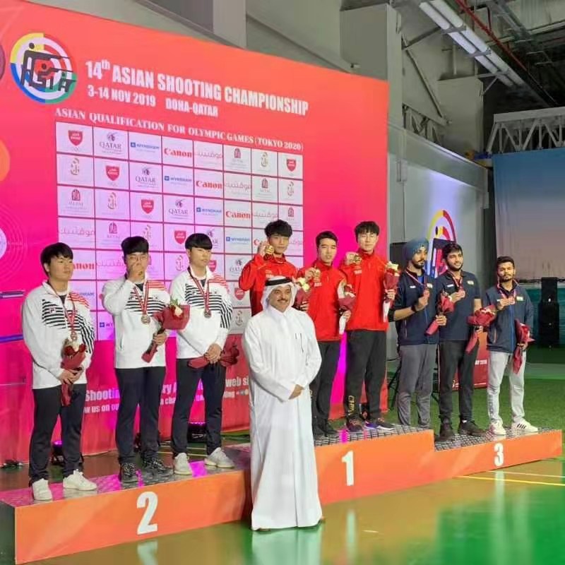 本网讯近日,第十四届亚洲射击锦标赛在卡塔尔多哈举行。在男子速射比赛中,我院2017级体育专业(现役运动员)班夏琦同学与国家队队员夺取男子速射团体冠军。在2019年7月举行的德国世界杯(青年组)射击比赛上,夏琦同学发挥出色,夺得25米男子运动手枪速射项目个人金牌。