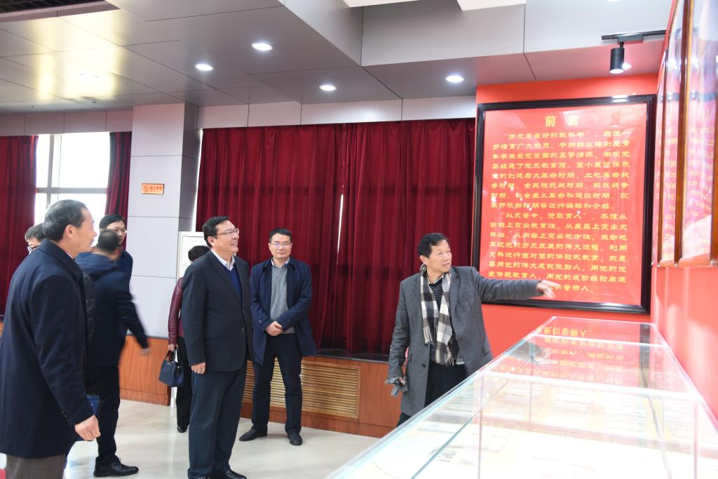 座谈后,徐成钢一行在淮南师范学院领导和相关部门负责人的陪同下,实地考察了淮南师范学院党史教育馆、信息技术实验楼、户外拓展训练基地等。(组织部)