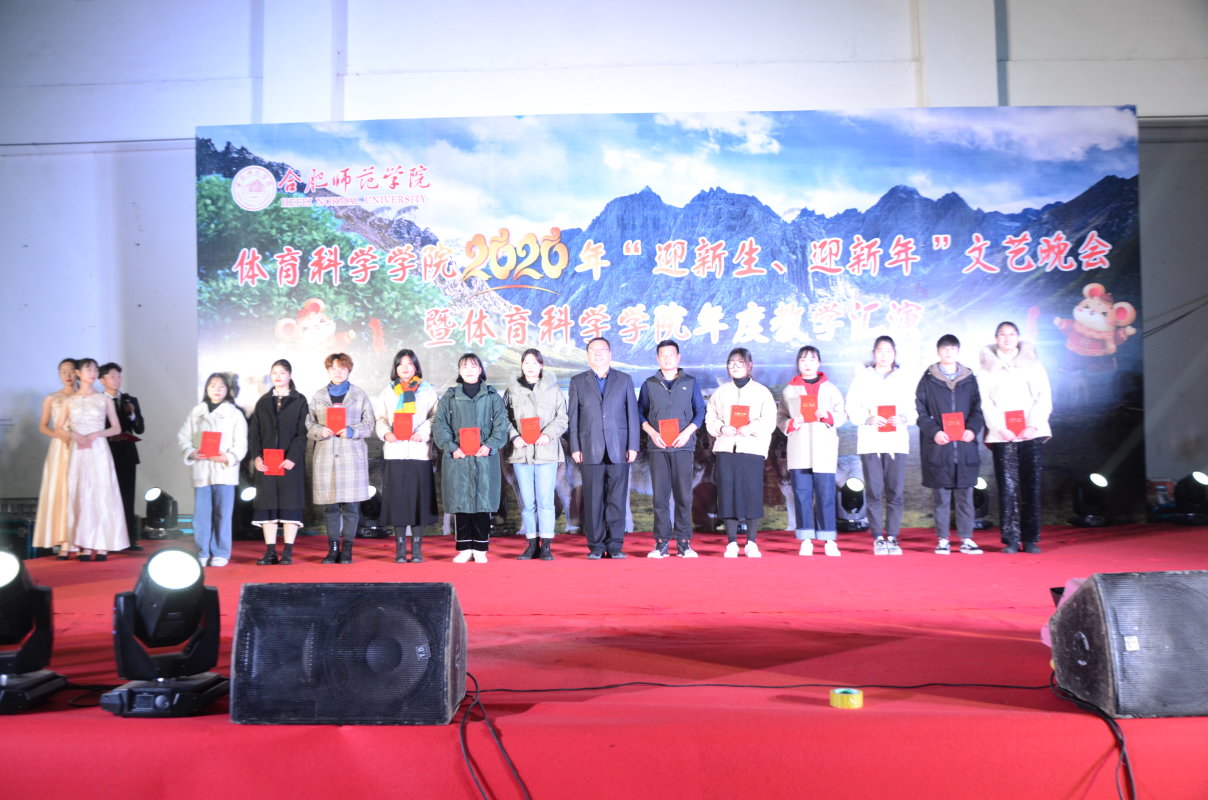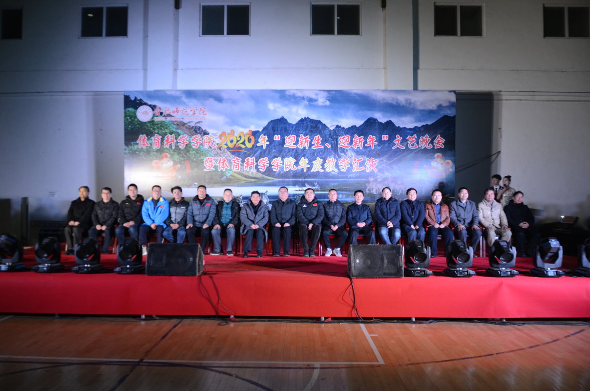 本网讯12月23日晚,由安徽水上运动管理中心、安徽省田径游泳运动管理中心、安徽省球类运动管理中心、安徽省射击运动管理中心和合肥师范学院体育科学学院联合主办,体育科学学院团委、学生会承办的体育科学学院2020年“迎新生、迎新年”文艺晚会暨年度教学汇演在锦绣校区体育馆隆重举行。党委书记徐成钢,党委副书记吴昕春,党委委员、纪委书记徐文林,安徽水上运动管理中心、安徽省田径游泳运动管理中心、安徽省球类运动管理中心、安徽省射击运动管理中心负责人,学院部分职能部门负责人以及体育科学学院千余名师生欢聚一堂,共享盛宴。