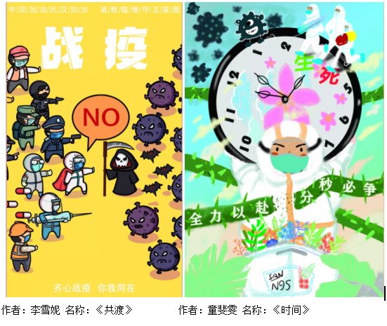 绘好抗“疫”故事的时代价值,培育实践创新力。越在重要关头,越要求真力行。致敬在这场战‘疫’中的最美“逆行者”等英雄,描绘出这个时代的中国精神、中国力量,为时代画好像、为时代立好传、为时代明好德?;籼鹄鲜岷峡纬逃恕⑹导艘?,结合学院开展的“疫情就是命令,防控就是责任”主题创作活动、“就业战‘疫’,师生同行”活动,以及学生党支部“线上高质量学习”主题党日等,在课程实践训练中还专门安排了疫情防控主题海报设计,要求同学们设计一幅或一组疫情防控为主题的创作作品,既要表达出爱国情、报国志,也要表达出求真与力行。通过“小切入、多层面”,讲好最美“逆行者”抗疫等故事,创作出挖掘爱国主义、制度优势和生命教育等作品,在线上适时分析指导每位同学的创意、图形、色彩、文字和版式的设计,最终编辑出两期“优秀作业联展”电子展,合师青年官方公众号推出。