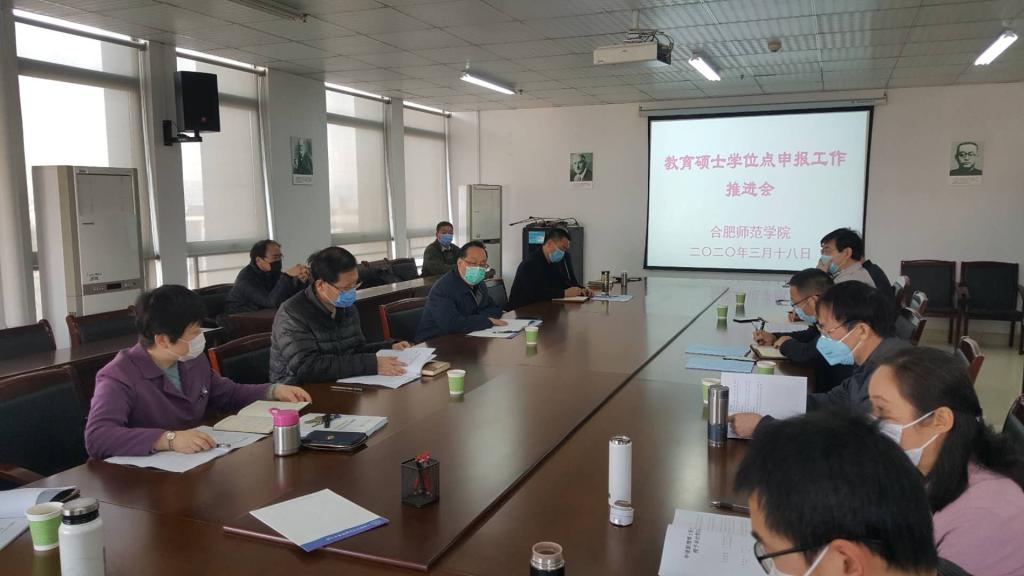 本网讯3月18日,我院在教师教育学院会议室举行教育硕士学位点申报工作推进会,会议由副院长姚本先教授主持。教师教育学院、文学院、外国语学院、数学与统计学院等二级学院主要负责人就前期学科专业建设情况进行了汇报研讨,相关学术带头人、骨干教师等参加了会议。