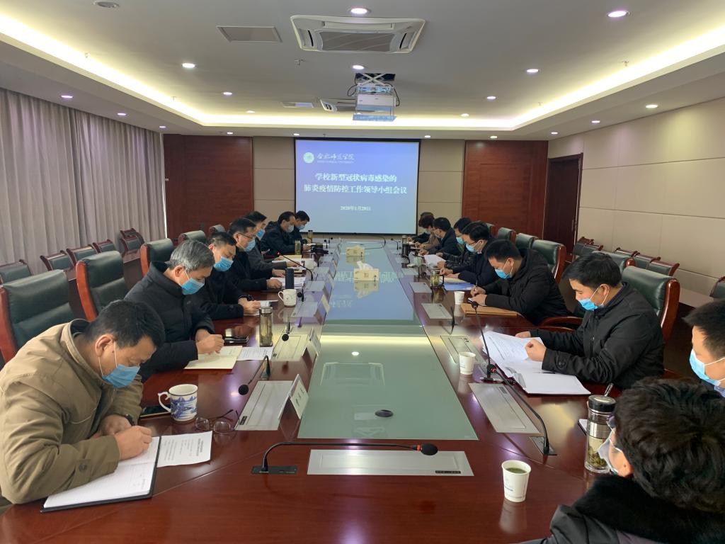 本网讯 1月28日,学校在锦绣校区第二会议室召开新型冠状病毒感染的肺炎疫情防控工作领导小组会议,全体校领导出席会议,相关职能部门负责人参加会议,会议由党委书记徐成钢主持。