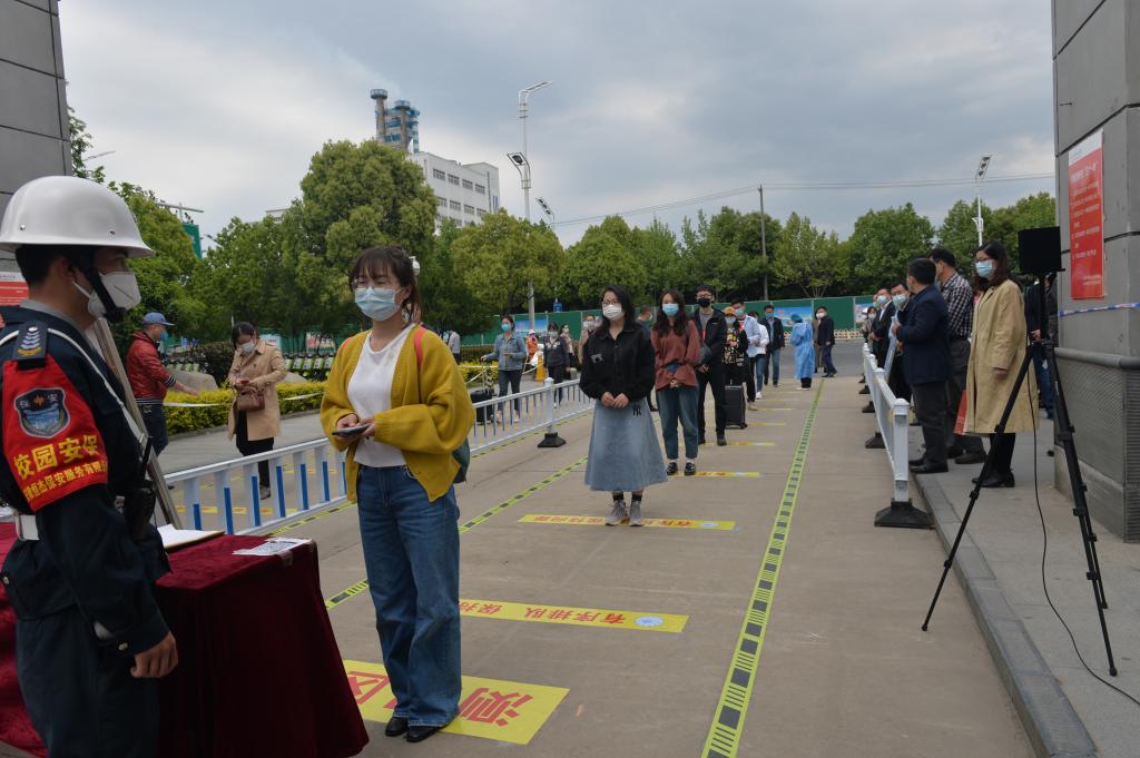 本网讯 4月27日下午,学院在锦绣校区组织开展2020年春季学期学生返校应急处置模拟演练。党委书记徐成钢,党委副书记、副院长李进华,党委副书记吴昕春,副院长谢阳群,副院长姚本先,副院长曹卓良,纪委书记徐文林,学院疫情防控工作领导小组相关职能部门负责人,二级学院分党委(党总支)书记、副书记到场观摩,办公室、学生工作处、后勤处、保卫处工作人员和全体辅导员100余人参与演练。