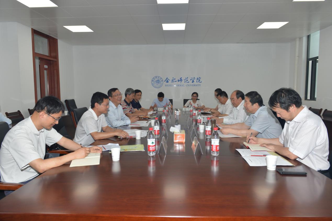 储常连代表安徽省教育厅感谢孙维杰监事长一行对安徽教育改革发展的关心,介绍了新世纪以来安徽高等教育转型发展的历程,重点介绍了安徽省在坚持走“地方性、应用型”发展道路、坚持走“开放合作、产教融合”发展之路以及坚持走实践、理论相结合的发展之路的探索实践及基本成效。座谈中,储常连对我院近年积极贯彻省委省政府“高教强省”战略,坚持“高起点建设合肥师范学院”,积极拓展办学空间,不断强化办学内涵,全面深化办学转型等方面工作给予充分肯定。