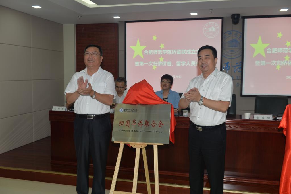 省侨联党组成员、副主席兼秘书长杨冰与党委书记徐成钢共同为学院归国华侨联合会揭牌。