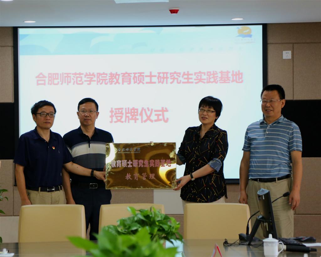 本网讯近日,由党委副书记、院长方东玲,党委委员、副院长曹卓良带队,研究生处及相关研究生培养学院负责同志参加,分别赴肥西上派初级中学、一六八中学、四十六中学和阳光中学等学校调研了解2019级教育硕士研究生实习情况并举行教育硕士研究生实践基地授牌仪式。