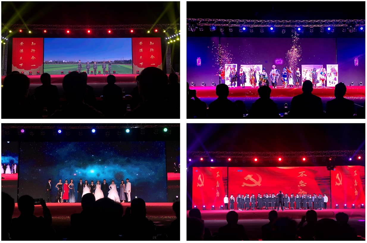 本网讯10月18日晚,由校团委主办,学生社团文化服务中心承办的庆祝建校65周年暨2020年迎新生文艺晚会于滨湖校区体育场隆重举行。副院长谢阳群,滨湖校区综合管理办公室、学生工作处、教务处、保卫处、后勤处等单位主要负责人,滨湖校区辅导员及近5000名同学到场观看晚会。