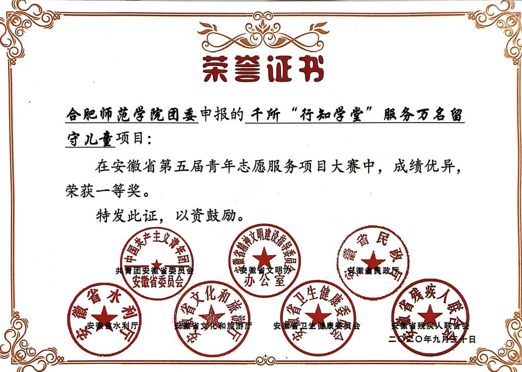 根据安徽省第五届中国青年志愿服务项目大赛总体部署和评审办法,经过公开展示、答辩等环节激烈角逐,我校团委《千所“行知学堂”服务万名留守儿童》项目获志愿服务项目大赛一等奖,并入围全国赛终评;刘铭传学院团委《“行知路,家乡情”乡土文化传承公益课堂》项目、数学与统计学院团委《“星星守望”志愿服务》项目获志愿服务项目大赛三等奖;电子信息与电气工程学院团委《播火记——情暖老兵志愿服务》项目获志愿服务项目大赛公益创业赛一等奖。