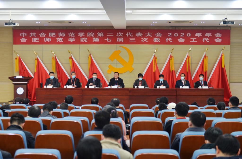在雄壮的《国际歌》声中,中共合肥师范学院第二次代表大会2020年年会和合肥师范学院第七届三次教代会工代会胜利闭幕。