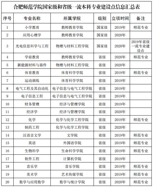 本网讯近日,教育部办公厅公布了2020年度国家级和省级一流本科专业建设点名单,我院光电信息科学与工程、应用心理学专业入选国家一流本科专业建设点,学前教育、经济学等5个专业入选安徽省一流本科专业建设点。