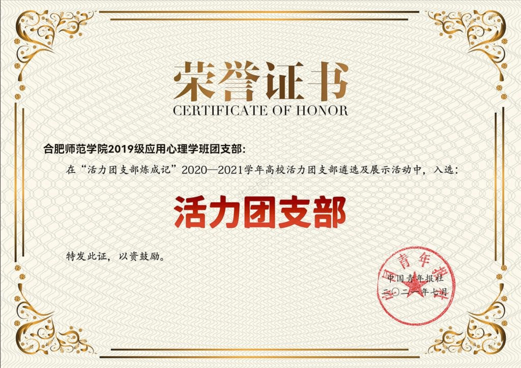 本网讯近日,由共青团中央指导、中国青年报社主办的“2020-2021学年高校活力团支部”遴选活动公布了全国高校“活力团支部”获奖名单,教师教育学院2019级应用心理学班团支部在全国众多基层团组织中脱颖而出,荣获2020-2021学年高校“活力团支部”荣誉称号。