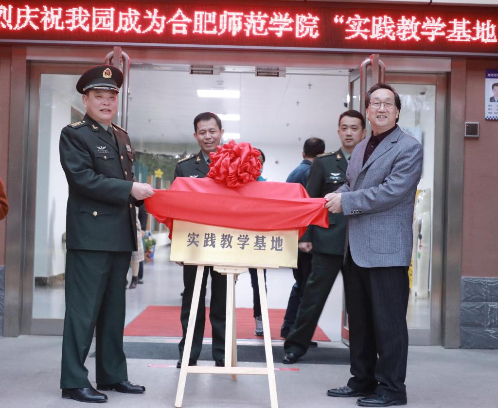 本网讯12月16日下午,我院在陆军炮兵防空兵学院幼儿园举行实践教学基地揭牌仪式。院党委委员、副院长姚本先,教师教育学院、教务处等部门负责人;陆军炮兵防空兵学院副政委陶金泉、政治工作处主任胡永峰、学院幼儿园园长李敏等共同参加此次揭牌仪式。