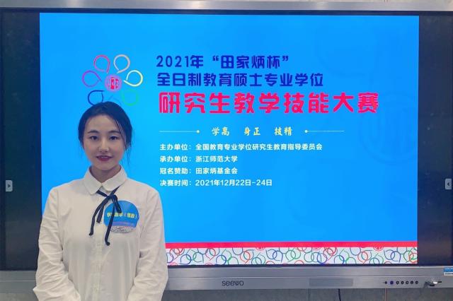 本网讯近日,由全国教育专业学位研究生教育指导委员会主办的“田家炳杯”全日制教育硕士专业学位研究生教学技能大赛决赛在浙江师范大学线上举行,来自全国一百余家培养单位的750余名研究生参加了决赛。经过激烈角逐,我院生命学科学院研究生刘锦轩同学荣获二等奖,生命科学学院唐元宵同学和马克思主义学院叶艺雯同学荣获三等奖,王占军副教授获得优秀指导教师奖。