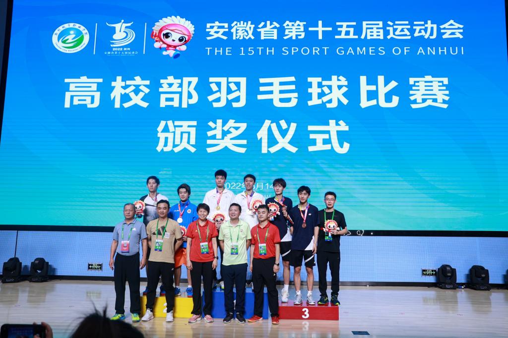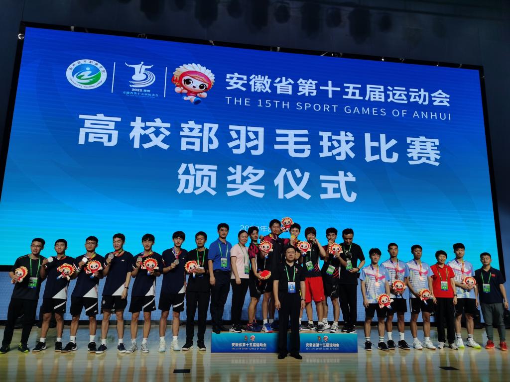 本网讯8月5日-14日,由安徽省人民政府主办,省教育厅、省体育局、滁州市政府承办的安徽省第十五届运动会高校部羽毛球比赛在滁州城市职业学院举行。共有来自全省61所高校540名运动员参加3个组别(甲组、乙组、丙组)的男团、女团、男单、女单、男双、女双、混双共21个项目比赛。我院羽毛球队获得丙组男团亚军、男双季军,斩获1银1铜,荣获体育道德风尚奖。