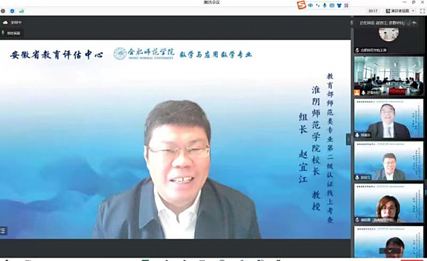 本网讯10月28日至11月12日,教育部师范类专业认证专家组对我院数学与应用数学、英语两个师范专业进行第二级认证线上考查,安徽省教育评估中心进行在线指导。