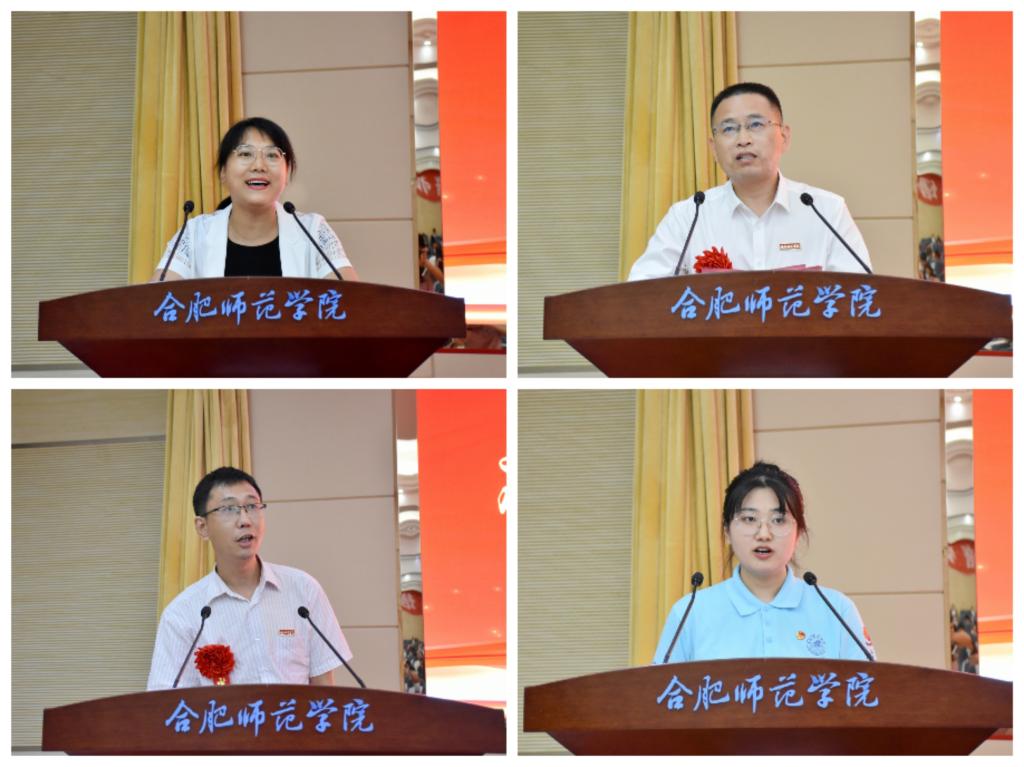 首届院“优秀教师”代表数学与统计学院副教授、博士王燕,首届院“优秀教育工作者”代表化学与化学工程学院辅导员、副教授张晖,获得“2022年度科研成果奖”教师代表电子信息与电气工程学院教授、博士曹欣远发言,畅谈了从事教学科研和教书育人的感受。学生代表刘一诺表达了对老师的感恩之情。