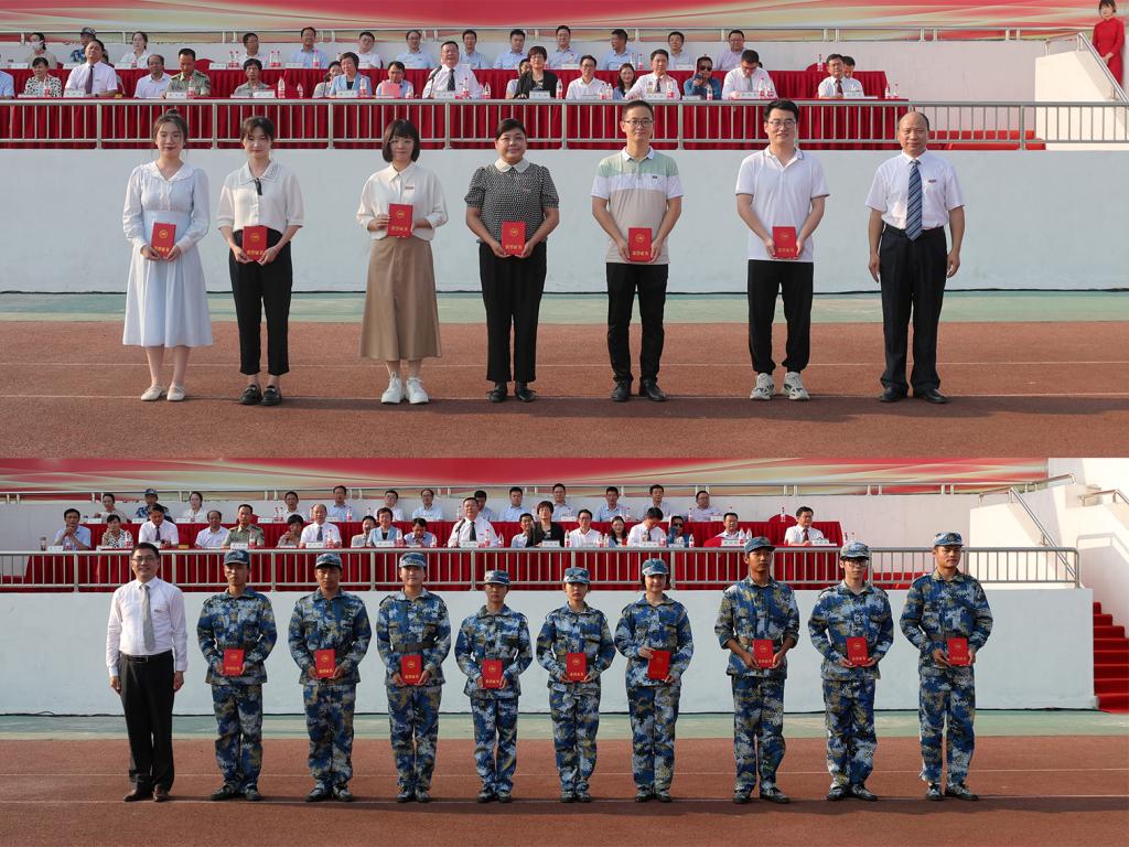 汇报表演结束后,党委副书记梁立昌宣读《表彰2022级新生军训优秀学员、优秀辅导员和优秀教官的决定》;院纪委书记徐文林、副院长周端明分别为优秀教官、优秀辅导员和优秀学员颁发荣誉证书。