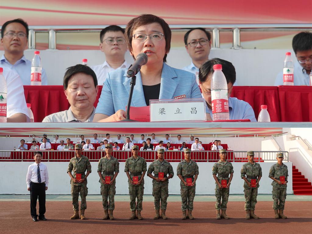 党委副书记、院长方东玲致辞。她代表全校师生员工向2022级新同学表示热烈欢迎,向经受艰苦考验、圆满完成军训的同学们表示热烈祝贺,向承训单位的领导和教官表示衷心感谢;简要介绍了学院办学情况。