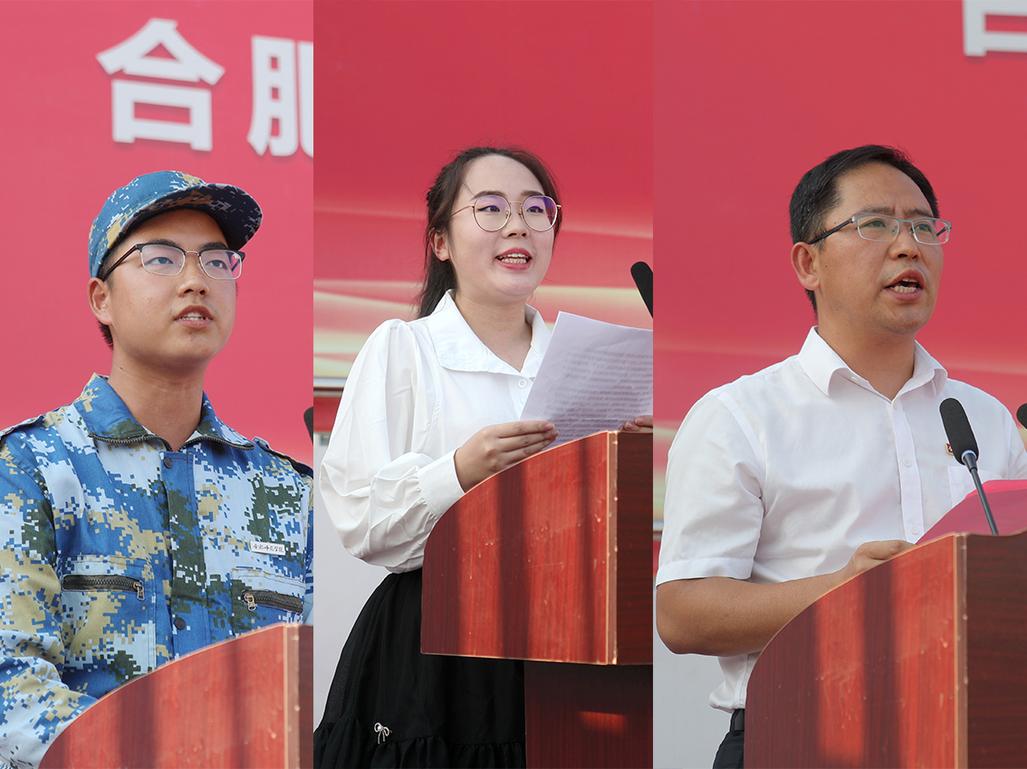锦绣校区教师教育学院胡连峰副教授、生命科学学院陈梦琳同学、马克思主义学院研究生杨东升同学、体育科学学院谭光谱同学分别作为教师代表和新老生代表发言;滨湖校区物理与材料工程学院訾振发教授、计算机学院张威龙同学、外国语学院尹瑜同学分别作为教师代表和新老生代表发言。