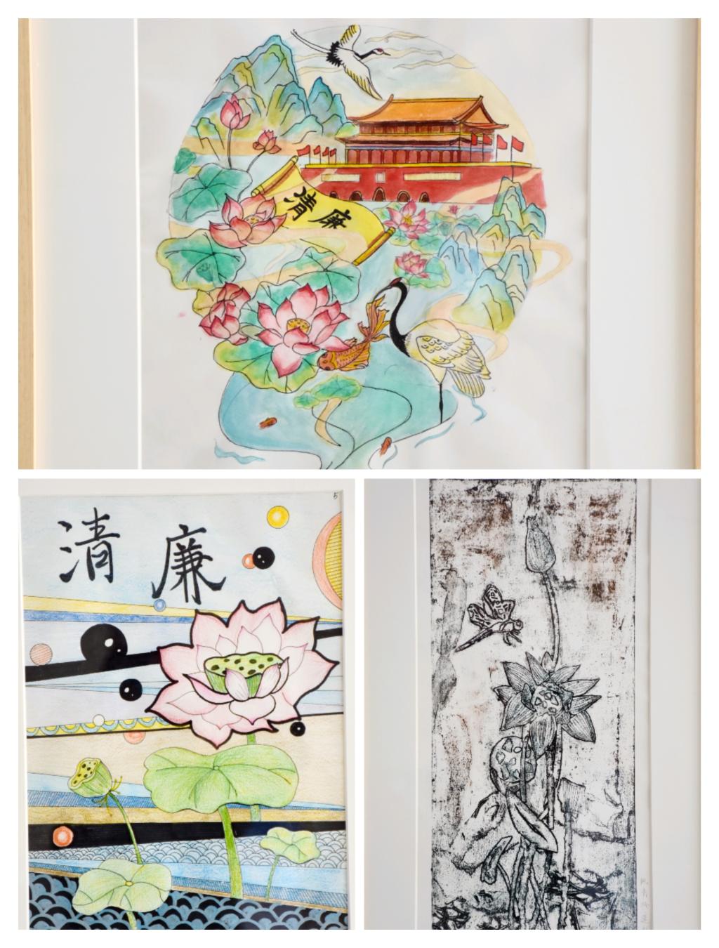 本次展览活动由院党委主办,院纪委承办,纪委办、团委、宣传部、人事处、艺术传媒学院党委协办,自9月份面向全院征集作品以来,全院师生热情参与,围绕弘扬廉洁理念、传播廉洁文化、倡导廉洁风尚等主旨积极创作,累计征集到绘画、书法、剪纸、摄影、视频、征文等类型作品120余件,经评审,评选出30余件入展。展品主题鲜明、寓意深刻、形式多样,既正面呼吁,也反面警示,充分将廉洁思想与文化艺术相结合,从不同角度表达了对廉洁文化的理解和诠释。以廉洁文化作品春风化雨、润物无声,引导师生崇廉尚廉、倡廉守廉、思廉享廉,以风清气正的精神风貌庆祝党的二十大胜利召开。(江丽/文 田夏/图)
