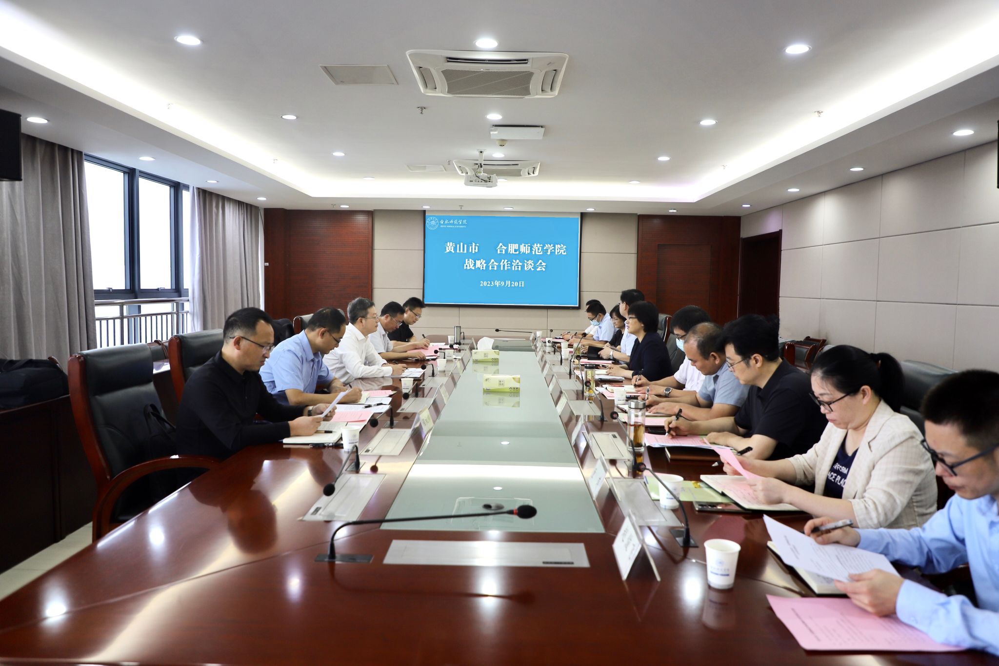 刘力对我院的热情接待表示感谢,称赞学院近年来取得的办学成效。他指出,当前黄山正聚焦“大黄山世界级休闲度假旅游目的地”战略定位,向着“七个强市”的奋斗目标加快迈进。新征程上,校地合作空间更为广阔、潜力更加巨大。希望借助合肥师范学院资源及优势在基础教育领域开展更加全面紧密的合作,共同谱写校地合作新篇章。他表示,将根据本次会议交流情况,加快明确方案措施,推进落实战略合作。