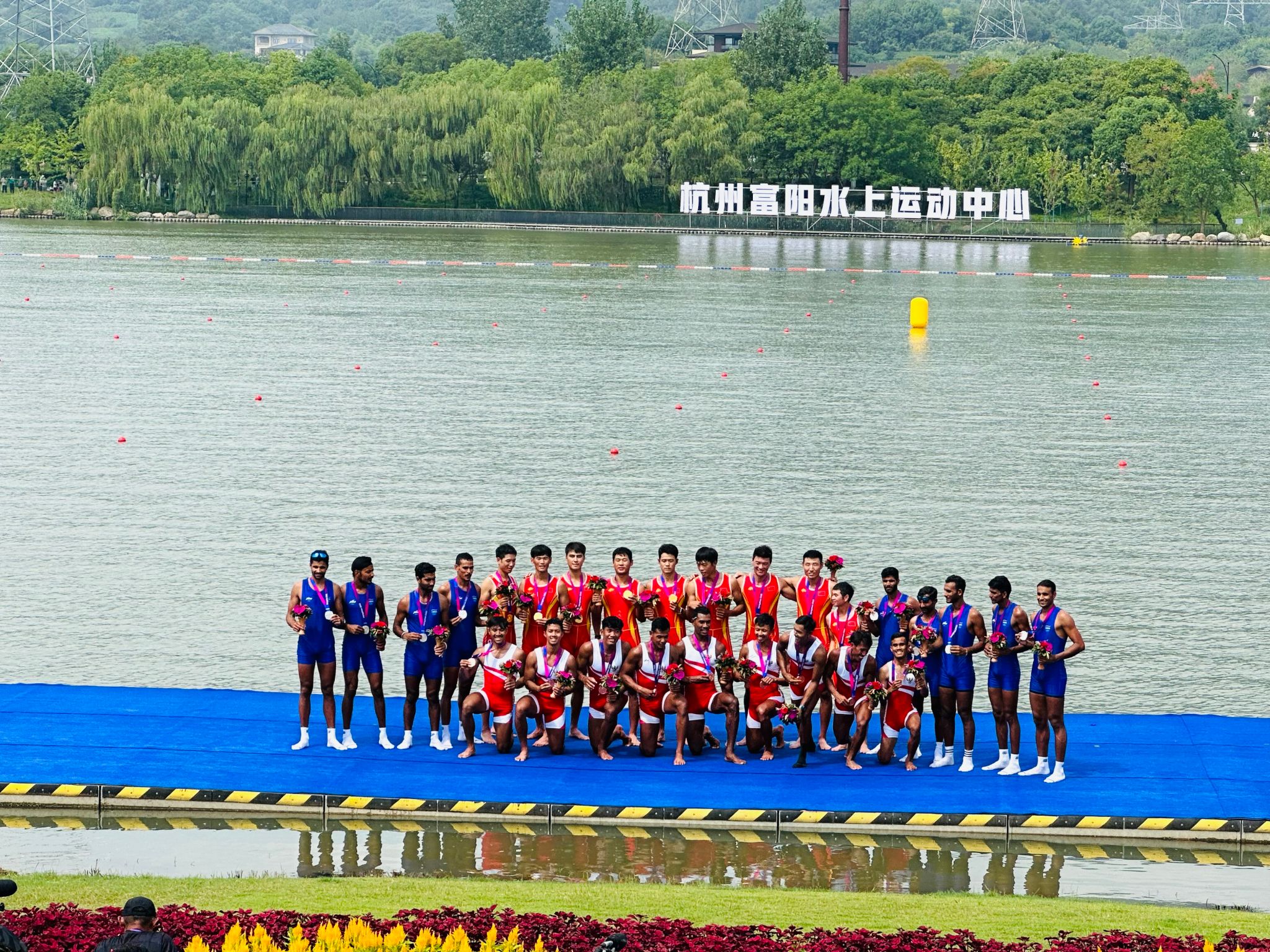本网讯 9月23日晚,第19届杭州亚运会在杭州开幕。9月24日上午在富阳水上运动中心举行的第19届杭州亚运会赛艇男子八人单桨有舵手决赛中,我院2020级运动训练专业徐桥同学与国家队队友,一起顽强拼搏,稳定发挥,最终以5分40秒17的成绩勇夺冠军,为中国代表团夺取第八金,同时,也是我省在本届亚运会上的首枚金牌。