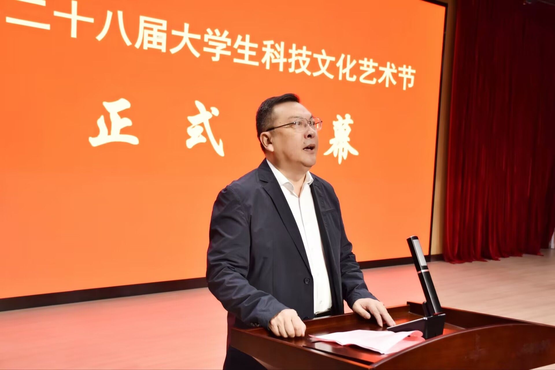 徐成钢代表学院和安徽省陶行知研究会致辞,对本届大学生科技文化艺术节的开幕表示热烈祝贺,对积极组织和参与艺术节各项活动的老师和同学们表示衷心感谢和诚挚问候。他指出,一年一度的大学生校园科技文化艺术节是学院学习贯彻习近平文化思想、弘扬社会主义先进文化的坚强阵地,是学院服务教育强国、教育强省建设的重要平台,是深化“三全”育人、推进“五育”并举、发挥“第二课堂”育人功能的有效载体,更是合师学子科技创新、文化交流、艺术绽放的青春盛会。他希望同学们积极参与各项活动,学习传承行知先生的教育思想,感悟行知文化熏陶,培养高雅艺术品位,提升实践创新能力,弘扬社会主义核心价值观,践行“爱满天下、知行合一”的校训精神,争做新时代的“陶子”,努力成长为堪当民族复兴重任的时代新人。他最后宣布合肥师范学院第二十八届大学生科技文化艺术节正式开幕。