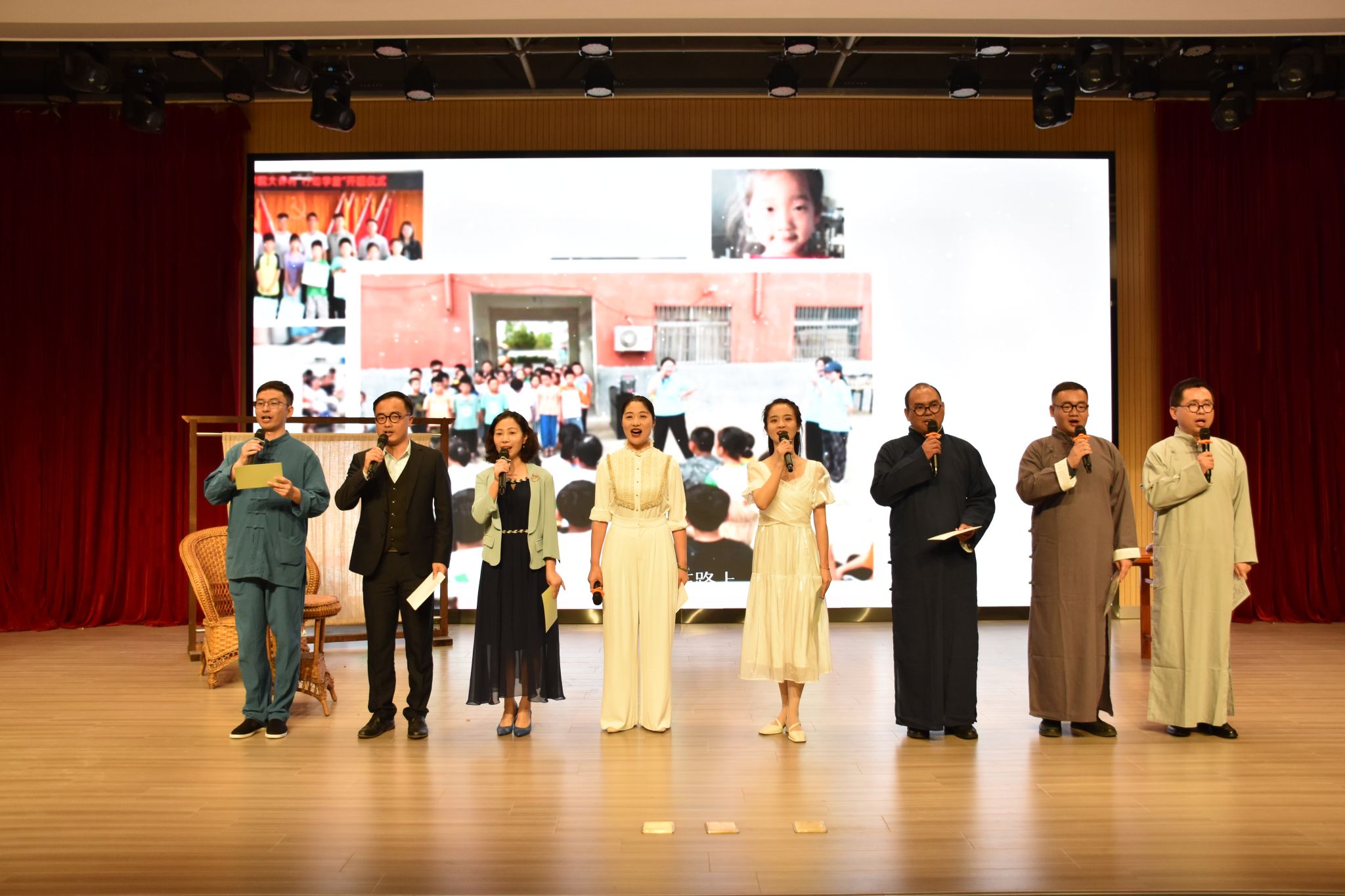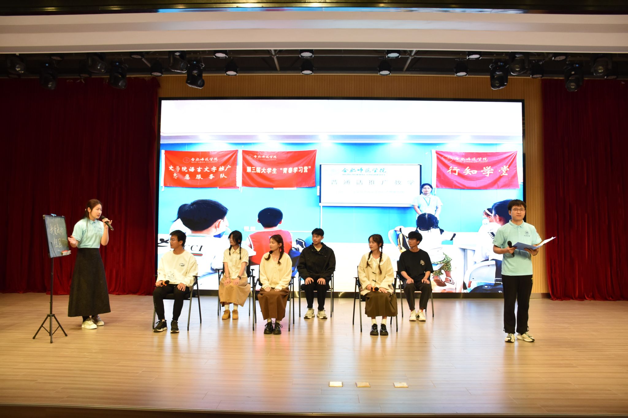 2023年陶行知教育思想诗文诵读会在校园之声广播台带来的《“陶”李天下,薪火相传》舞台剧中拉开了帷幕;文学院带来的《陶灯兴学,知火代代》在一幕幕生动表演中阐释“爱满天下,知行合一”的教育理念;音乐学院的节目《行知不辍,薪火永传》激励着合师学子承先生意志,开吾辈先锋;合肥师范学院附属西安路学校的节目《陶行知教育故事两则》生动阐明了“生活即教育,社会即学校”的教育理念;教育与心理科学学院的节目《燃灯远山,守望未来》讲述了支教教师难舍师生情,最终选择留在大山里陪伴学生的感人故事;院团委学生组织的节目《陶风尽起,盈车嘉穗》展示了合师学子立志走“教人求真学做真人”教育之路的决心;院团委、生物与食品工程学院、文学院带来的《追求光,成为光,散发光》通过讲述三个“行知学堂”活动期间的小故事展现了“行知学堂”育人品牌的魅力;教工青轻读书会带来的《捧着一颗心来,不带半根草去》全景介绍了陶行知先生生平事迹和主要教育思想,为诵读会画上了圆满的句号。