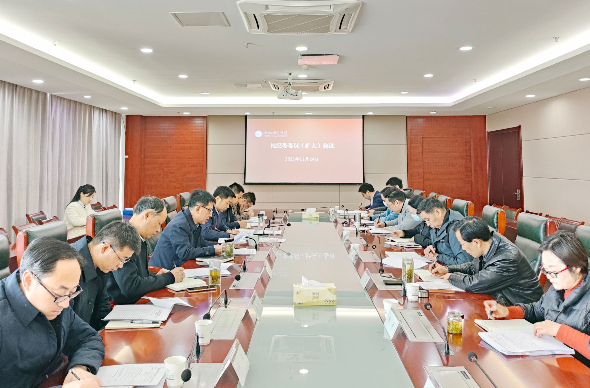 本网讯 11月24日上午,院纪委在行知楼2008会议室召开纪委委员第十五次(扩大)会议。院党委委员、纪委书记、监察专员徐文林主持会议,各院(系)级纪委负责人、纪委办公室人员列席会议。