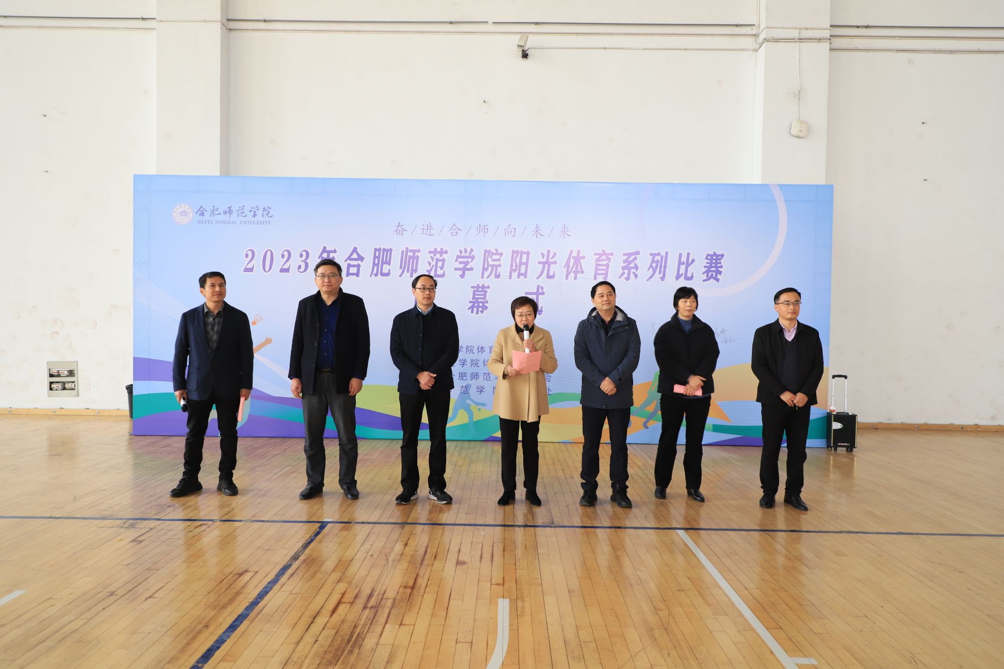 本网讯 体育促进交流,体育促进发展。11月29日,由体育科学学院、院团委和教务处联合主办、历时8个月的“奋进合师向未来”阳光体育系列活动在锦绣校区体育馆圆满闭幕。院党委副书记梁立昌,宣传部、教务处、院团委和体育科学学院党政负责人,各体育俱乐部指导老师及各二级学院学生代表参加闭幕会。闭幕会由体育科学学院公共体育教学部主任谢永力主持。
